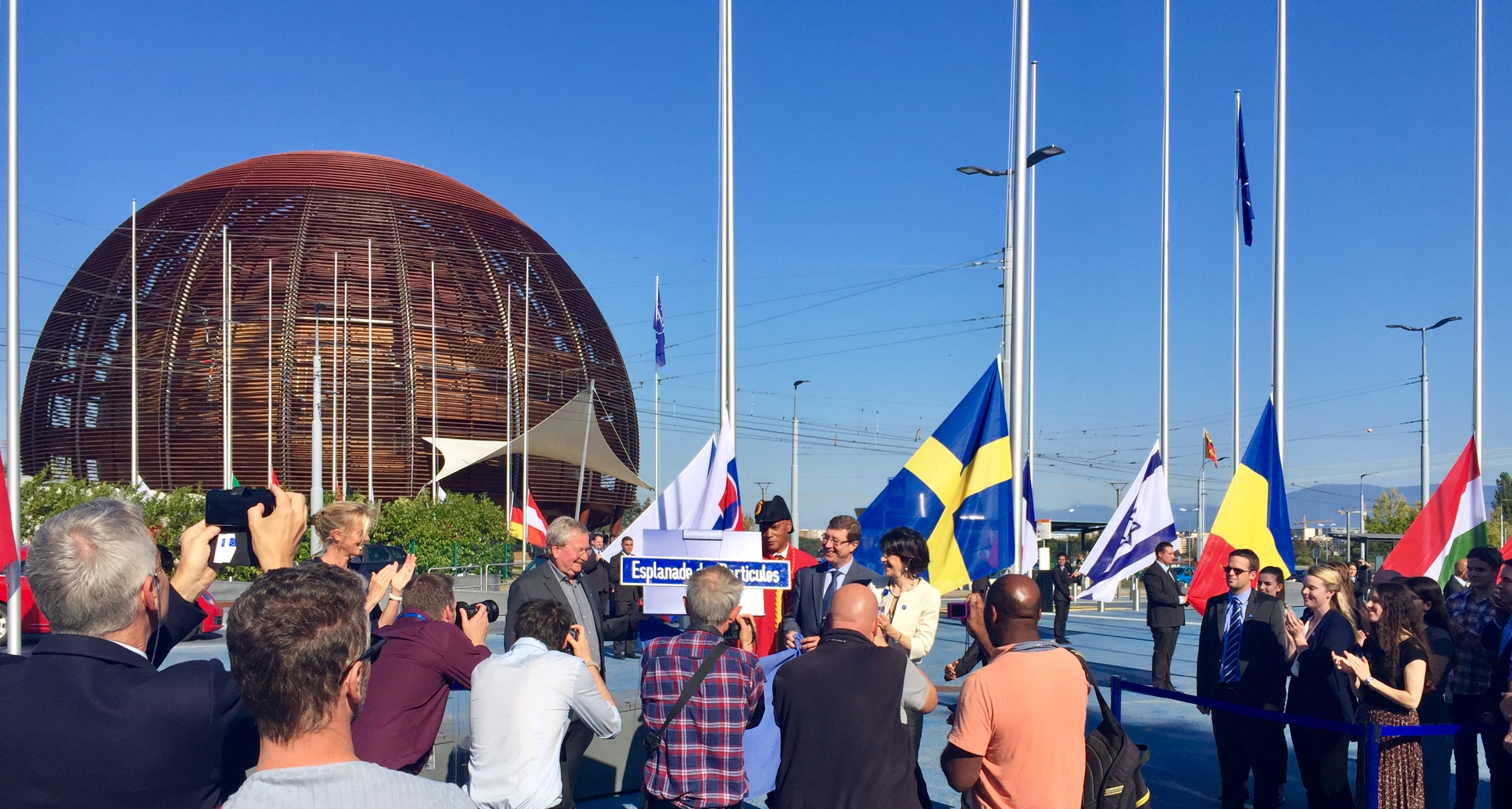 "After a long period of construction works, the Esplanade des Particules was inaugurated today, and the flags of the Members States were raised."